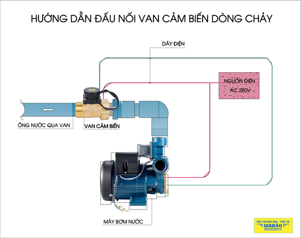 Các bước lắp đặt Rơ le dòng chảy máy bơm nước