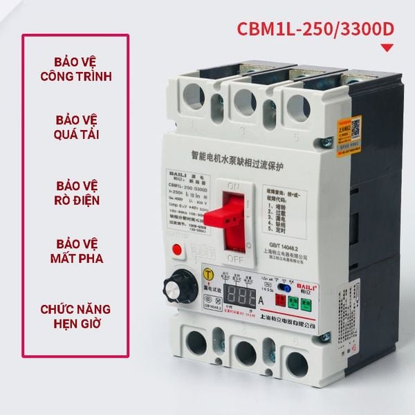 Aptomat chống mất pha Baili ,CB bảo vệ quá tải động cơ 3 pha 380v 40A/63A/100A