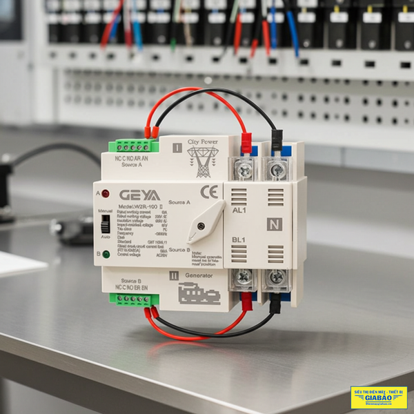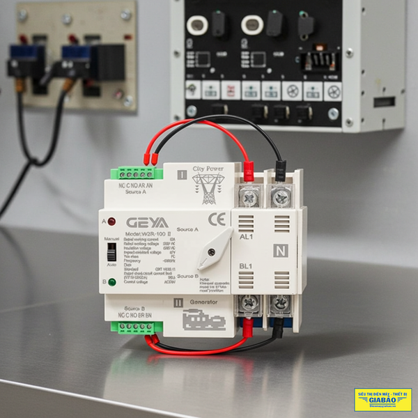 - ATS chuyển nguồn tự động giữa 2 nguồn điện 3 pha 4P 100a Geya