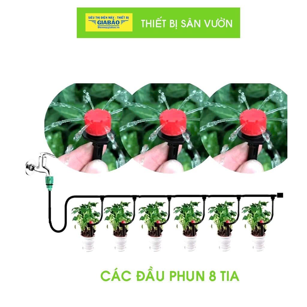 | Tưới Chính Xác & Tiết Kiệm Nước | Béc phun 8 tia có thể điều chỉnh lưu lượng độc lập cho từng chậu cây. Công nghệ tưới nhỏ giọt đảm bảo nước thấm trực tiếp vào gốc, giảm lãng phí bay hơi và tràn ra ngoài. |