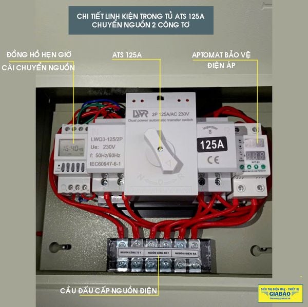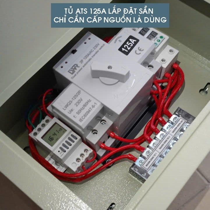 Sản phẩm sử dụng linh kiện chính hãng như Timer NKG5, ATS LW 125A và Aptomat bảo vệ điện áp thông minh